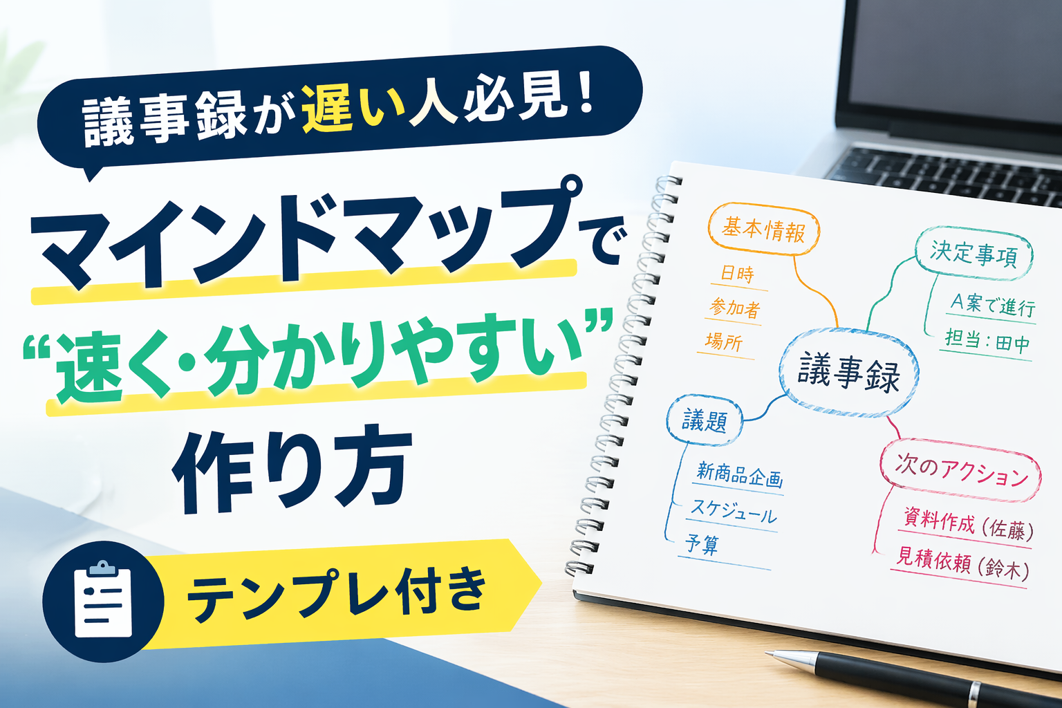 【そのまま使える】マインドマップ議事録テンプレ